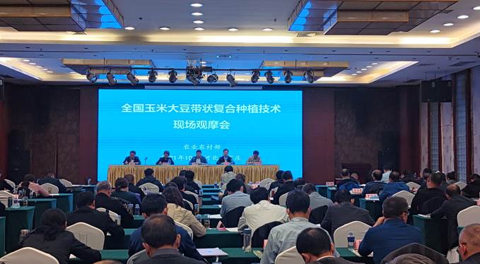 下午,王戈主持召开了技术培训与典型交流会,杨文钰与雍太文分别作了“玉米-大豆带状复合的主要优势与关键技术”和“玉米大豆带状复合种植绿色防控技术”专题培训,围绕带状复合种植技术优势、技术内涵、技术前景及技术关键给予全面讲解,并对生产中的认识误区、机具选型不当与核心技术掌握不到位等问题逐一剖析,让参会者全面了解了技术中的难点、疑点和重点。随后,河北藁城区、内蒙古包头市、河南永城市和山东肥城市等单位进行了典型发言,交流了各市(区)玉米大豆带状复合种植经验做法和推广成效。