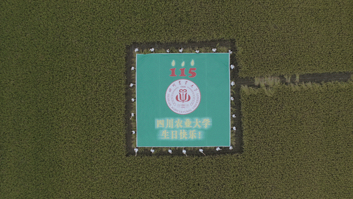 今年正值建校115周年,同学们纷纷赤脚走进水稻田,整齐列队,高擎“祝四川农业大学生日快乐”字样的旗帜,一起高声呼喊“学农爱农,强农兴农!祝母校115岁生日快乐!”,在田间用农学院特有的方式,为建校115周年送上真挚的祝福。