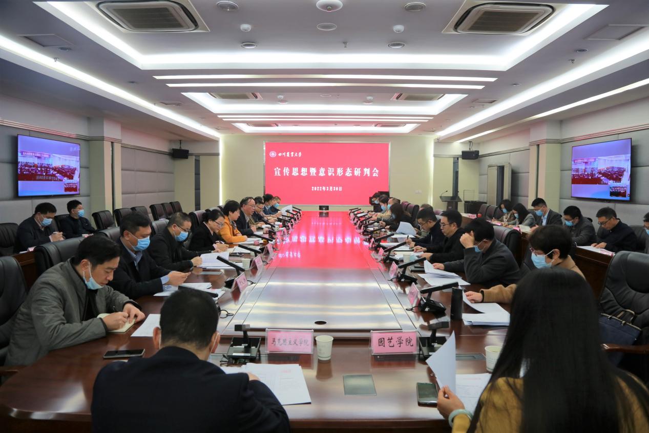 针对新形势下的宣传思想工作,他强调,要高度重视意识形态工作,加强网络舆情防范和处理,提高政治站位,切实维护学校安全稳定。要坚持守正创新做好宣传思想工作,进一步压紧压实工作责任,落实各级宣传思想工作精神和要求,围绕学校重点工作提早谋划,管理和运用好新媒体,总结提炼推广各单位特色亮点做法,用喜闻乐见的方式讲好川农大故事,传播川农好声音,助力学校“双一流”建设。要围绕党的二十大这条主线,全力以赴做好习近平总书记和习近平新时代中国特色社会主义思想报道,充分发挥统一思想、凝聚力量作用,为党的二十大胜利召开营造团结奋进的舆论强势。