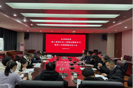 4月1日,农学院党委召开(扩大)会议,专题部署深入贯彻中央八项规定精神学习教育工作。学院党委委员、纪委委员、师生党支部书记参会,学院党委书记唐城主持会议。