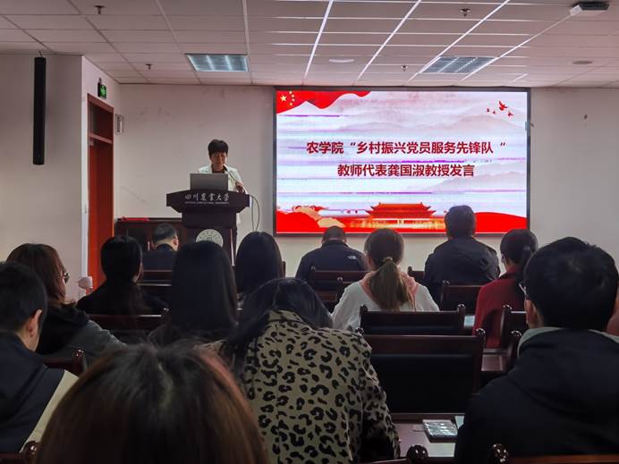 仪式上,学院党委委员为“乡村振兴党员服务先锋队”授旗。教工植保党支部党员代表龚国淑教授、布拖科技小院党小组徐驰同学代表“乡村振兴党员服务先锋队”师生党员发言,她们表示,将继续扎根基层,服务三农,在社会服务和科技支农的工作中亮身份、树旗帜、做贡献,以实际行动献礼中国共产党百年华诞。