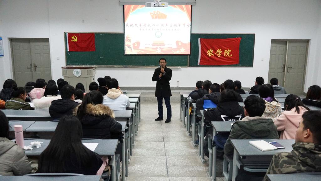 12月11日下午4:30,农学院于4-A107举行庆祝改革开放四十周年主题分享会暨86期党校总结会。农学院党委书记胡迅,党委办公室主任、团委书记汤瑞瑞和农学院第86期党校学员参与会议。会议由青年先锋队队长黄秋月主持。