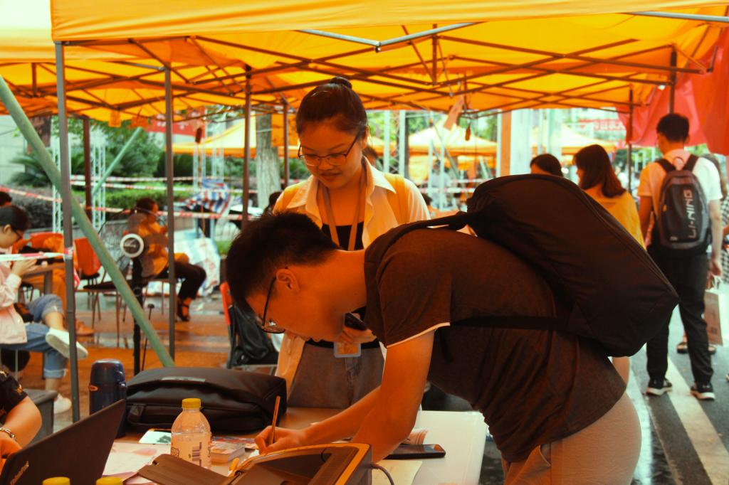 入党积极分子葛秋林结束今天的迎新工作时,头发和衣服早已湿透,“累并快乐着”是她对今天的总结,她也表示:“希望通过我们的努力,能代表农学院给大家留下良好的第一印象。”