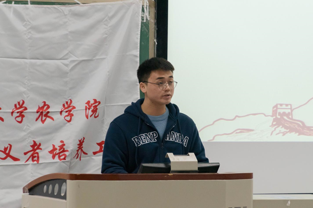 图为农学院学生团委副书记汤苏扬主持结业典礼