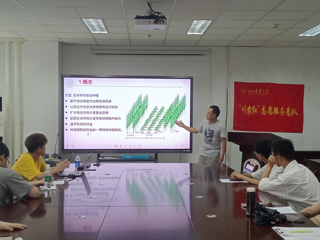 为明确“大豆-玉米带状复合种植技术推广”暑期社会实践的重大意义,使团队成员掌握大豆-玉米带状复合种植的技术要点,具备农技服务的基本能力,7月10日,四川农业大学大豆-玉米带状复合种植技术推广团队全体成员在7-405参加培训。