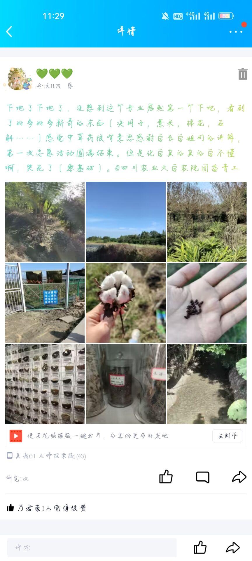 种子科学与工程专业的刘洪江同学感慨:“我在家里看一百部乐竞体育平台官方网站粮食的纪录片都不如亲自下地躬身实践一下来的真切,收获很大。”活动结束后,同学们纷纷发布QQ空间,展示参与活动后的收获。